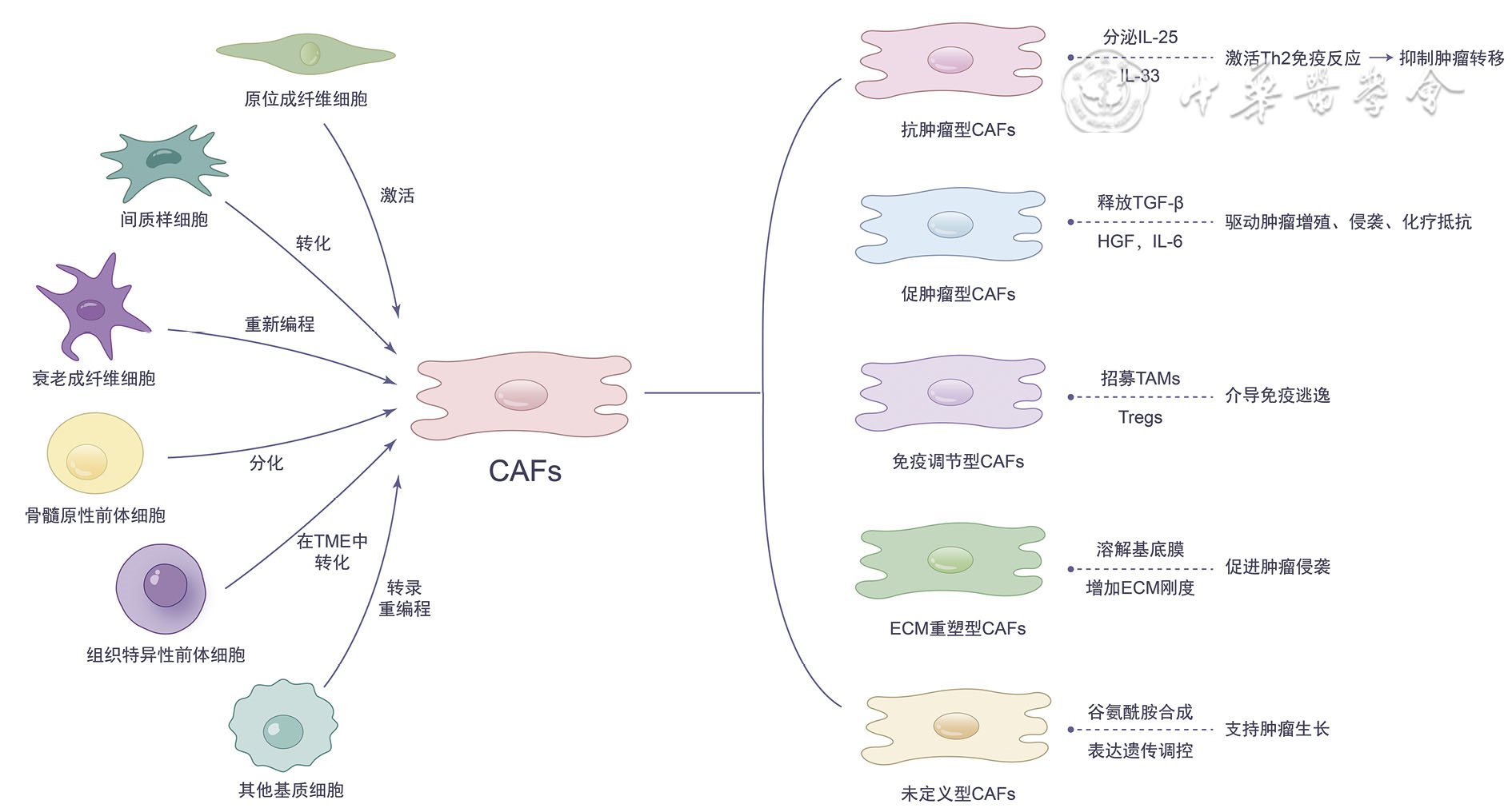 Biffi G, Tuveson DA. Diversity and biology of cancer-associated fibroblasts[J]. Physiol Rev, 2021, 101(1): 147-176. DOI: 10.1152/physrev.00048.2019.