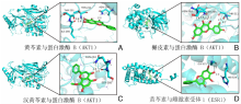 图6. 关键成分与核心靶点的分子对接模式图注:左侧为蛋白质-配体结合的整体概览图;右侧框内为结合口袋的局部放大视图;黄色虚线表示活性成分与氨基酸残基(如ASN-204、HIS-524等)之间形成的氢键,数字表示氢键键长
